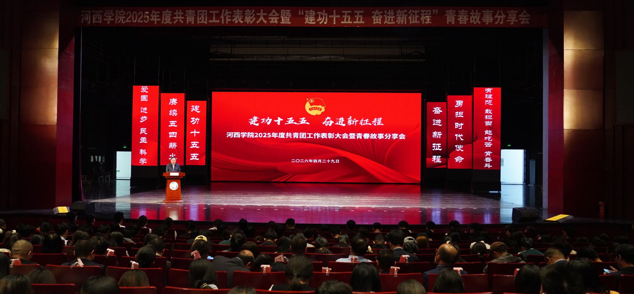 4月29日,河西学院2025年度共青团工作表彰大会暨“建功十五五 奋进新征程”青春故事分享会在河西讲堂报告厅召开。党委常委、副校长唐志强出席并讲话。