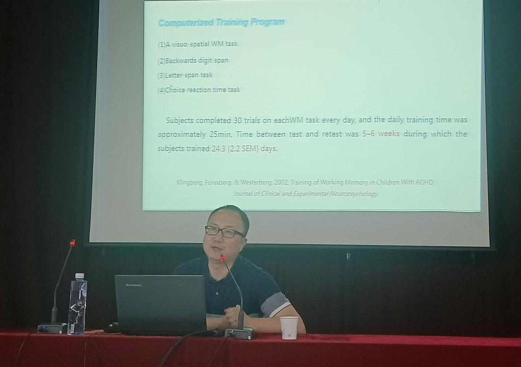 报告会上,赵鑫教授针对认知能力能不能通过训练得到提高的问题,详细介绍了他的系列研究成果:对中小学生有关活动记忆任务的研究发现,训练可以提高其智力水平;对照青少年与老年被试转换任务的研究发现,训练对处于发展期的青少年儿童认知能力提高有效,对处于衰退期的老年人认知能力提高效果不明显;通过对大学生N-Back任务和转换任务的研究发现,训练导致多巴胺等大脑神经活动递质密度发生了变化,解释了通过训练提高认知能力的机制。赵鑫教授在介绍相关研究的同时,给我院师生们展示了一堂精彩的心理学研究思路、方法以及伦理的示范课。赵鑫教授和参会师生围绕报告内容进行了深入交流和探讨,热情解答了学生在学习和考研中遇到的问题,激发了同学们对心理学研究的浓厚兴趣和愿望。