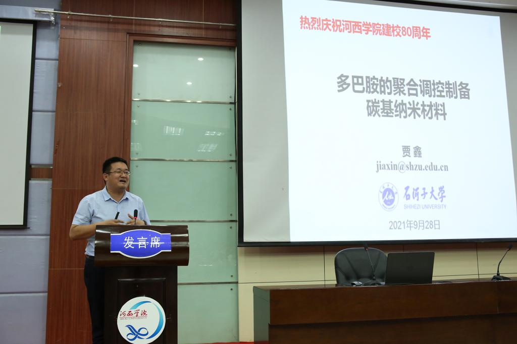 河西学院建校80周年之际,化学化工学院特聘教授中科院上海有机所田伟生研究员,石河子大学贾鑫教授及学院2005届校友中科院兰州化学物理研究所牟斌研究员应邀来校参加校庆活动,并为化学化工学院全体师生作学术报告。