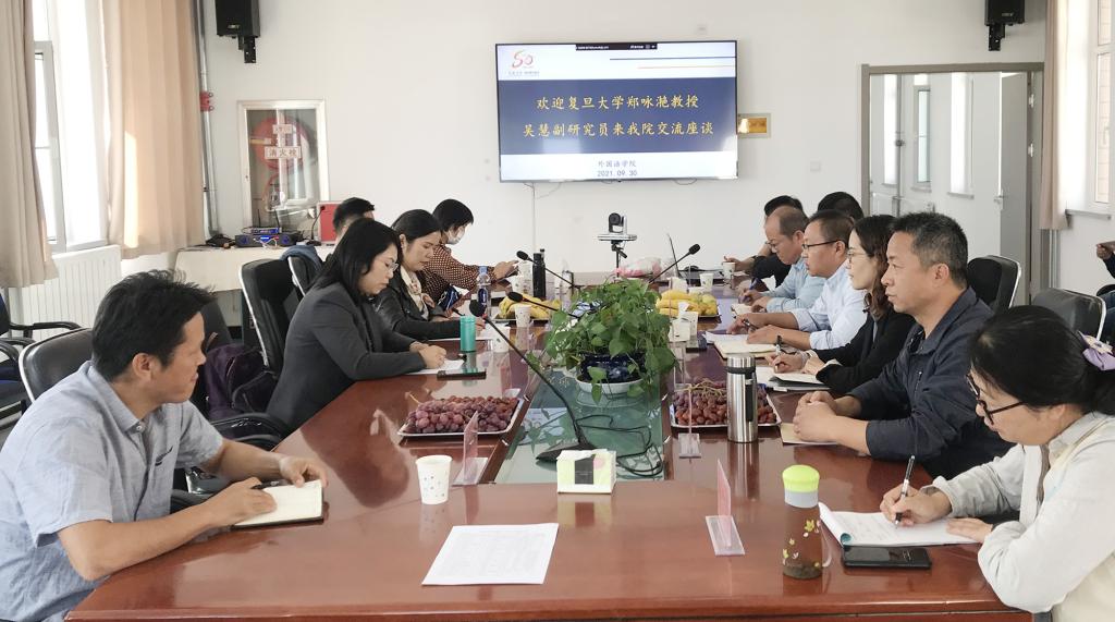 次日下午,郑咏滟教授、吴慧副研究员参加复旦-河西对口交流座谈会外国语学院专场,围绕学院的国家社科基金项目申报、教学科研团队建设、核心期刊论文发表、本科人才培养方案修订、翻译专硕点申报以及线上线下混合式一流课程建设等话题给予了针对性的指导和建议,助力学院教育教学、科学研究和社会服务事业的发展。