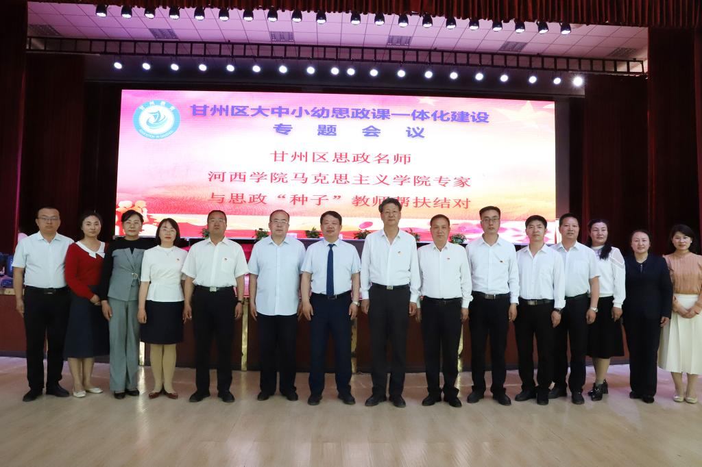 在甘州区大中小幼思政课一体化建设专题会议环节,甘肃省思想政治理论课蔺海鲲名师工作室负责人、甘州区思政名师与思政课“种子”教师签署了帮扶对接协议。蔺海鲲教授作了主题发言,对全面贯彻落实党和国家关于学校思政课改革创新相关政策和习近平总书记考察中国人民大学重要讲话精神作了阐述,总结了推动河西地区大中小幼思政课一体化建设的主要活动、基本经验和创新路径,并对今后强化合作交流机制、深入开展互联互通行动做了规划安排。