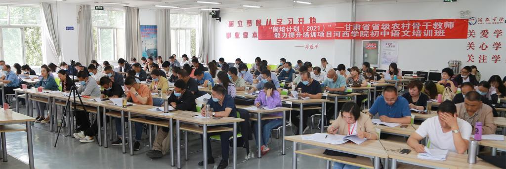 6月21日,学校承担的“国培计划(2021)”——甘肃省省级农村骨干教师能力提升培训项目初中语文培训班开班仪式在大学生活动中心就业大厅举行。文学院、继续教育学院负责人、班主任和培训学员参加了开班仪式。