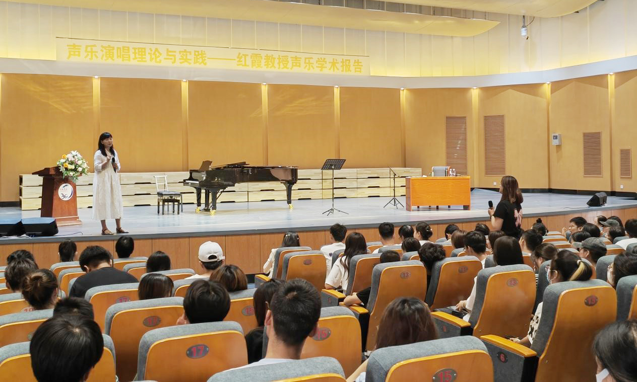 6月26日上午,邀请中国音乐家协会会员、西北民族大学音乐学院声乐教授、硕士研究生导师红霞教授作了“声乐演唱理论与实践”的学术报告。红霞教授向与会师生分享了她的歌唱及教学经验,并对音乐学院二、三年级声乐方向的5名学生进行了一对一的授课和指导。红霞教授全情投入、认真授课,根据每个学生的不同情况,从发声方法、语言的重要性、咬字发音规范、气息运用、作品处理等多个方面进行了细致、耐心的演示指导,指导效果立竿见影,获得了现场师生由衷的赞叹和热烈掌声。