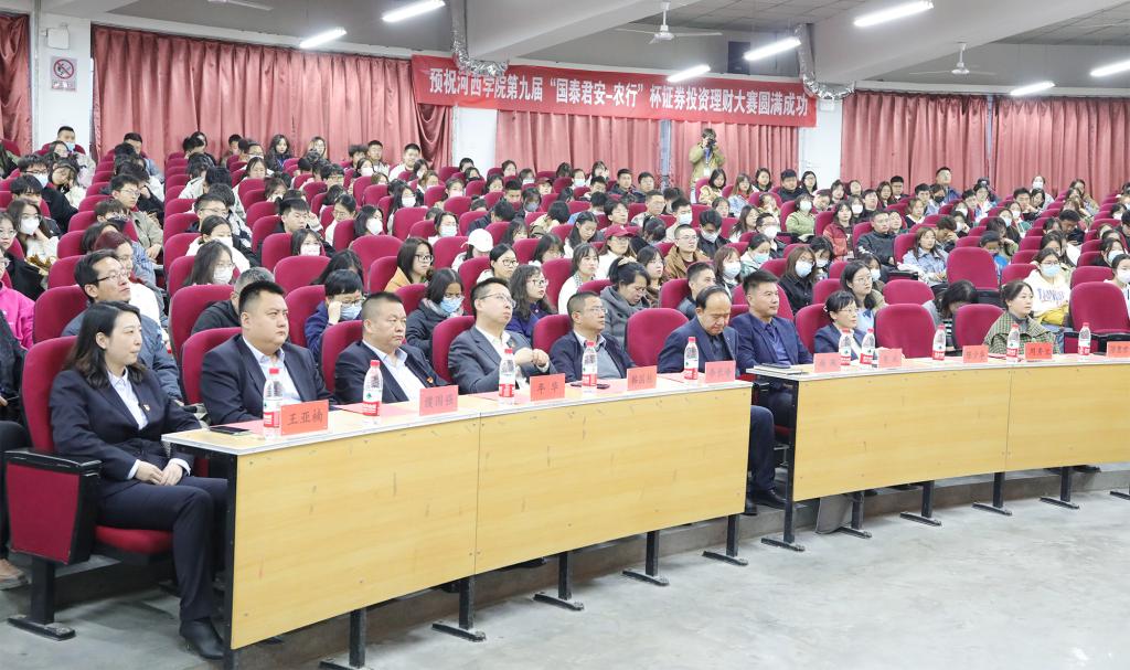 为深入开展“三抓三促”行动,4月3日晚,由学校教务处、国泰君安证券有限公司、农业银行张掖市分行主办,经济管理学院承办,面向全体在校学生开展的“河西学院第九届‘国泰君安-农行杯’金融知识进校园暨证券投资理财模拟大赛”开幕式在学术二厅顺利举行。农业银行张掖市分行、甘州区支行和国泰君安张掖营业部负责人、相关工作人员及学校教务处相关负责人、经济管理学院全体教职工、参赛学生参加了开幕式。