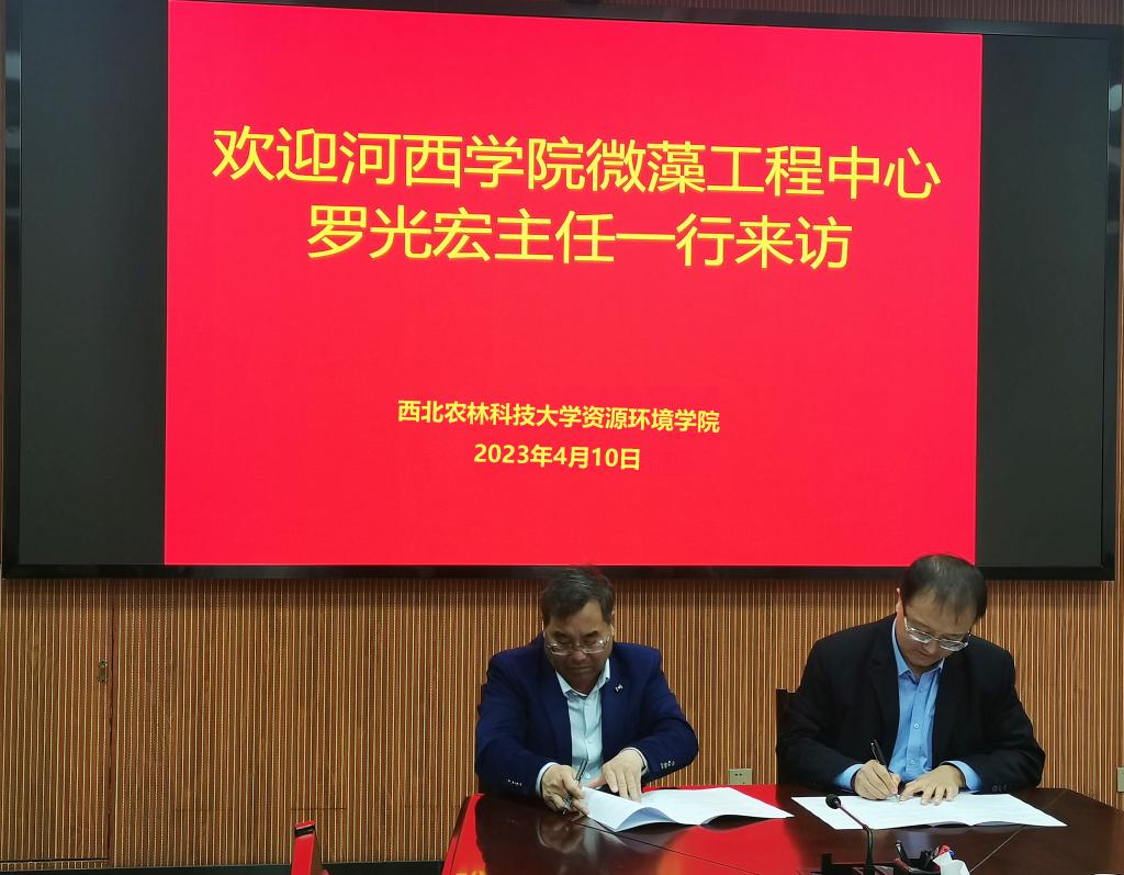 4月10日上午,河西学院甘肃省微藻工程中心负责人罗光宏教授一行赴西北农林科技大学资源环境学院考察调研,开展了交流座谈会暨合作备忘录签约仪式。西北农林科技大学资源环境学院院长田霄鸿教授、李明教授、杨芳副教授、王浩副教授、张庆玮副教授参加了座谈会与签约仪式。