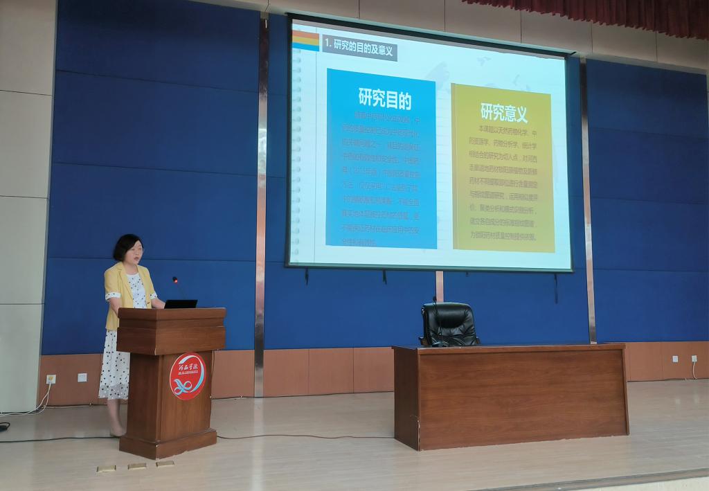 报告会上,王玉梅、何文涛、包静文、李文阳、王栋、刘雨娟、高晓雅、闫美玲、黄得栋九位老师分别作了题为“河西走廊道地药材锁阳不同提取部位HPLC/HPLC-MS指纹图谱的研究”“荧光探针在生物小分子检测中的应用”“超声声衰减成像技术评估代谢相关脂肪性肝病肝脂肪变程度的应用研究”“AOAA在小鼠结肠炎模型中的作用及机制研究”“不同肝癌分期系统对TACE治疗患者预后价值比较研究”“黄芪多糖对胰岛素抵抗小鼠肝组织p85α和p110α亚基表达的影响”“SS- OCTA在脉络膜肥厚谱系疾病的应用”“白凡士林安全性评价”“中药商品规格等级的制定与修订-以南五味子药材为例”学术研究专题报告;赫媛媛、李萍、胡毓雅三位老师分别作了“兰州大学访学汇报”“兰州大学课程进修汇报”“复旦大学进修汇报”的访学进修汇报;王丽老师作了对职称申报、晋升过程的交流。