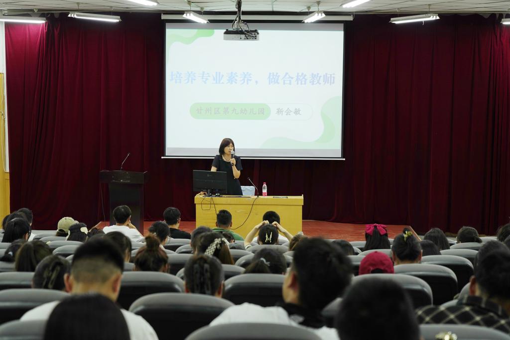 6月15日上午,甘州区第九幼儿园书记靳会敏作为了“培养专业素养、做合格教师”的报告。报告围绕什么是专业素养、小学教师应该具备的专业素养有哪些、如何培养专业素养做一名合格的教师三个方面,结合自身的成长经历进行了分享。