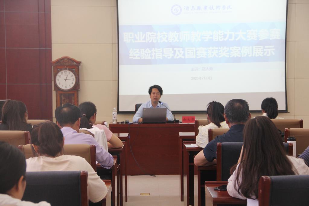 赵大勇副教授以“职业院校教师教学能力大赛参赛经验指导及国赛获奖案例展示”为题以自身参赛经验和国赛获奖案例为学员讲述了职业院校教师教学能力提升的另一种途径,以及职业教育对现代经济发展的重要性。