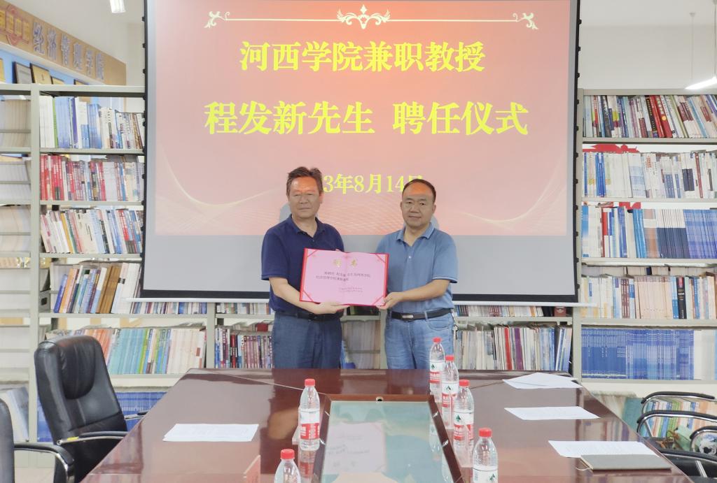 仪式上,经济管理学院负责人介绍了程发新教授教学、科研和服务社会等方面的基本情况,为程发新教授颁发了聘书。程发新教授表示,将尽自己最大的努力为家乡的教育事业倾心服务,通过讲座、授课、学术交流等方式毫无保留地传授经验,支持学院发展。