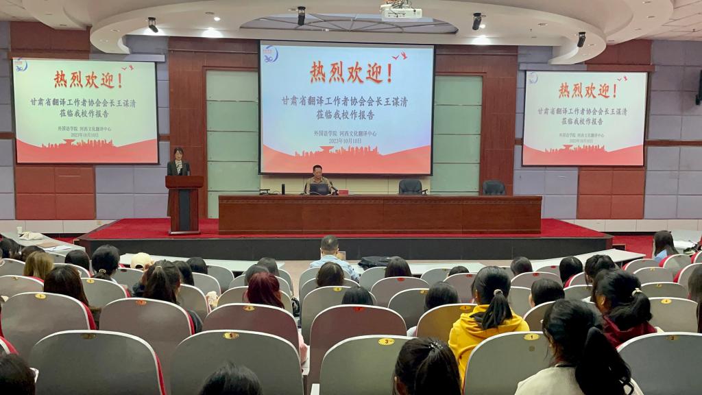 10月9日至10日,甘肃省翻译工作者协会会长王谋清教授应邀为外国语学院师生分别作了题为“以德育培养为先导,以课程思政为路径——高校外语翻译教师素养重论”和“新时代背景下翻译人才的素质要求”的学术报告。