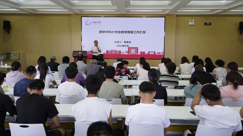 郭金生教授对大学生数学竞赛进行了介绍,汇报了我校近几年大学生数学竞赛获奖情况,分享了以理育人,以赛促学,以赛促教的教学理念。