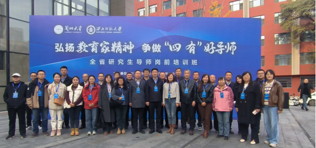 11月1日至3日,由甘肃省学位与研究生教育学会主办,兰州大学、西北师范大学承办的“弘扬教育家精神、争做‘四有’好导师”研究生导师岗前培训班在兰州大学开班。我校生物与医药、材料与化工、博物馆、能源动力、护理等30名导师和管理人员参加了培训。