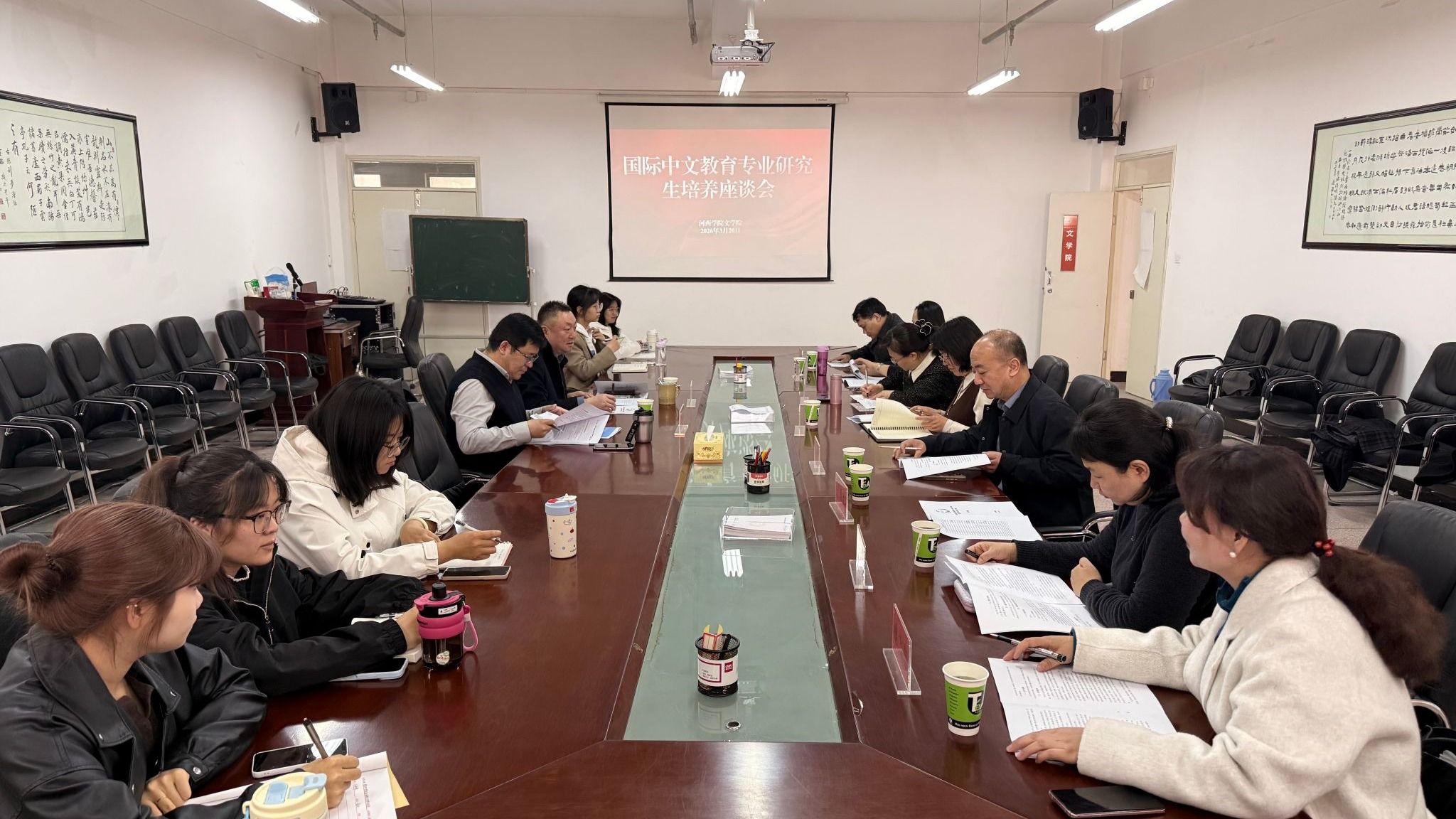 3月20日,文学院召开国际中文教育专业研究生培养座谈会。会议邀请了兰州理工大学文学院院长钱得运作指导,国际中文教育相关导师和2025级国际中文教育专业全体研究生参会。