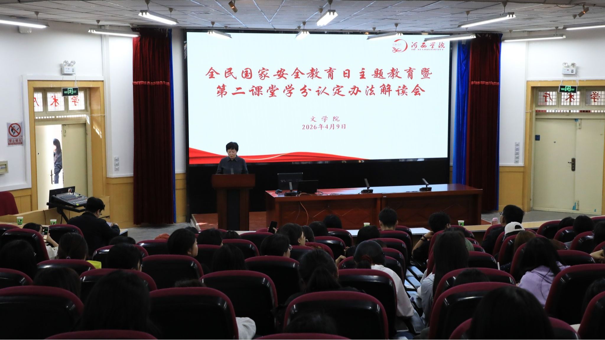 4月9日,文学院开展全民国家安全教育日主题教育暨第二课堂学分认定解读会。学院负责人、辅导员、全体学生及各班主任参加。
