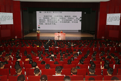 雪漠对道德经第五十四章进行了解析及阅读经典的重要性,如何将经典学以致用、融汇贯通;如何运用传统文化的智慧,解决心灵问题,改善生命质量;如何将哲学化为生活的方法论,提升自己的精神境界,让师生在品味经典的同时,领略了中华文化的博大精深。会后,雪漠老师和师生进行了互动交流,引经据典解答了师生提出的问题。