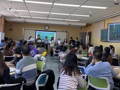 工作坊中,李瑾瑜教授用“闭眼撕纸”、“七巧板教学”现场案例演示的方式来引导学员反思教学中存在的问题,引导教师明确教学中要有清晰的教学目标,有效的教学语言以及及时的调整与反馈,避免教师用“权力”来控制学生的“权利”。演示教学结束后,李瑾瑜教授又以微型讲座的形式,从“教学与学习关联的基础”、“基于‘学习’的教学性质”、“从‘我’到‘我们’的课堂教学改革”几方面对本次工作坊内容进行了拓展升华。