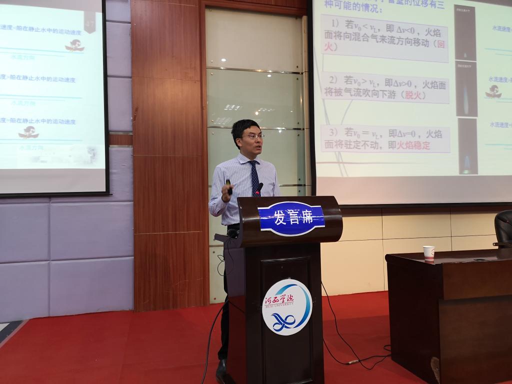 周屈兰教授作了题为“《燃烧学》教学与传统文化的整合——工程教学的课程思政实践”的教学报告。他结合自身教学实践,讲述了如何从课堂讲授的“高度”、“广度”、“深度”、“宽度”、“难度”、“热度”角度出发在《燃烧学》课程中融入课程思政,并通过《燃烧学》教学与传统文化整合的教学实例回应了赖绍聪教授的教学设计理念,从《燃烧学》的发展简史、各章节内容等方面演示了如何从引入、展开、归纳等方面融入自身对学科知识体系的感悟来吸引学生注意力,如何让课程的难度与人文情怀的厚度相称。