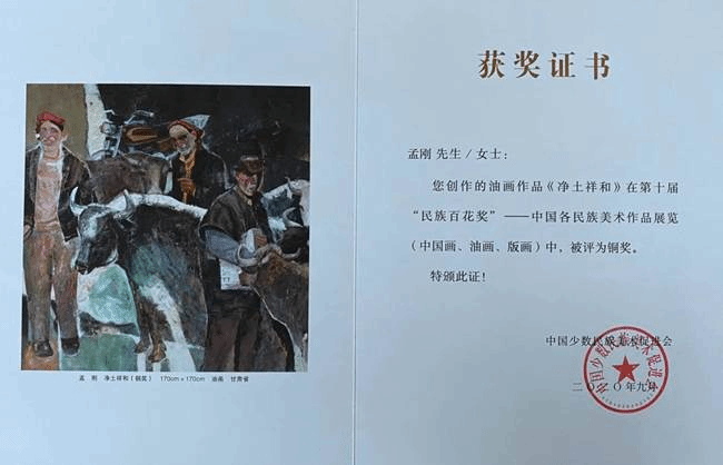 近日,由中国美术家协会和中国少数民族美术促进会主办的第十届“民族百花奖”——中国各民族美术作品展奖项揭晓,我校美术学院孟刚副教授的油画作品《净土祥和》荣获铜奖。这也是我校深入持久开展民族团结进步教育、申报第八批全国民族团结进步示范单位关键阶段取得的最新成果。