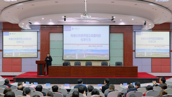 12月7日,化学化工学院邀请西南大学化学化工学院何荣幸教授在图书馆二楼报告厅为师生作《探索电催化剂表界面及其重构的化学奥秘》学术讲座。学院负责人及师生代表共计200余人参加。