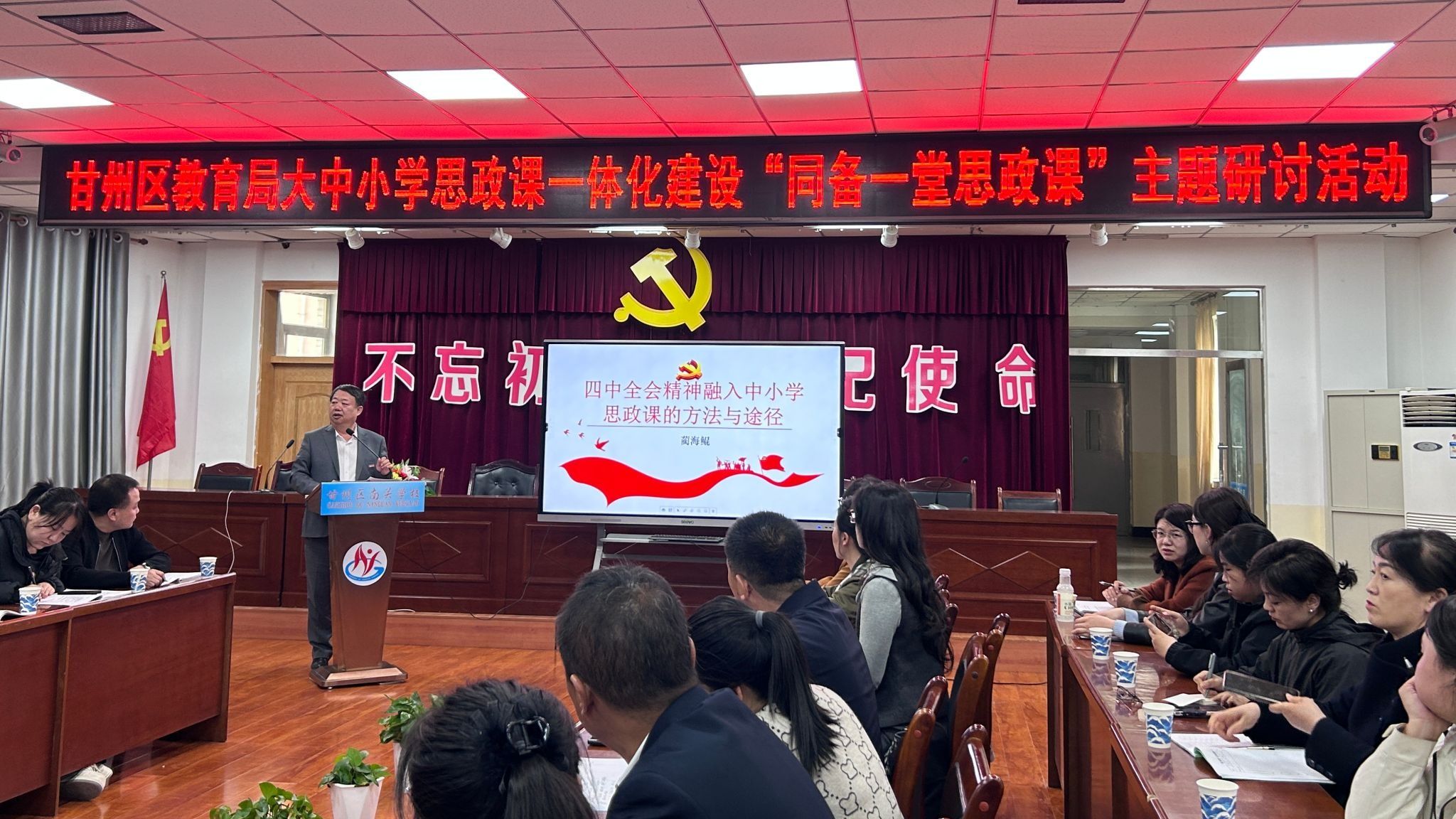 近日,甘州区南关学校教育集团开展了甘州区大中小思政课一体化建设“同备一堂思政课”主题研讨活动,甘肃省思政名师工作室主持人、马克思主义学院蔺海鲲教授和学院教师代表应邀参加并做专题讲座。