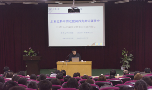 12月17日晚,应历史文化与旅游学院邀请,清华大学水利系张景平博士在学术二厅作了《水利史料中的近世河西走廊边疆社会》,200多名师生参加报告会。
