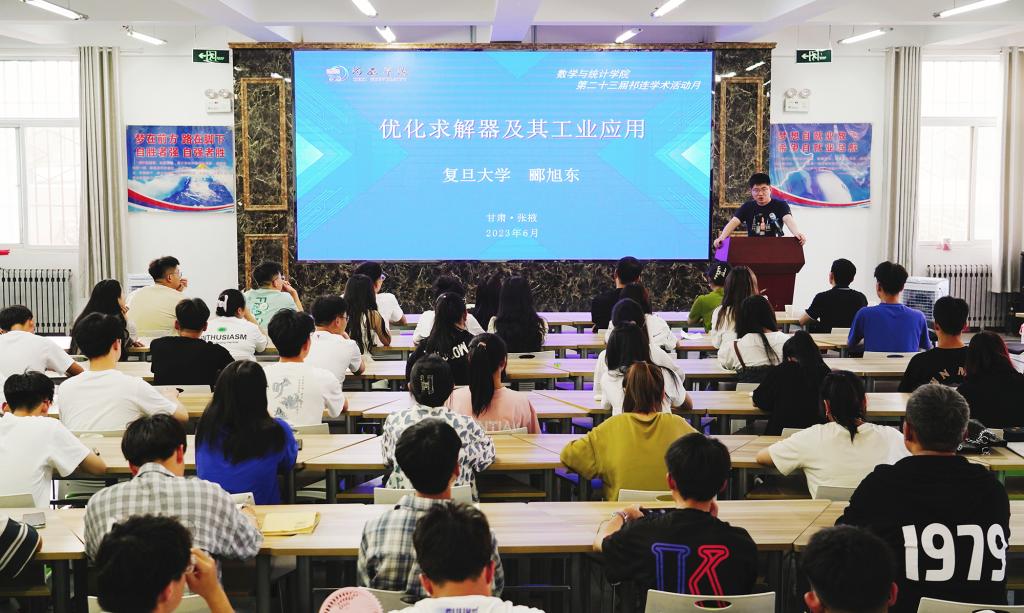 应数学与统计学院邀请,6月18日,复旦大学大数据学院青年研究员、博士生导师郦旭东来校作了题为“优化求解器及其工业应用”的学术报告,大数据专业100多名师生聆听了报告。