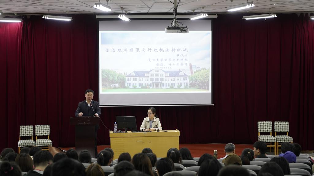 9月27日下午,复旦大学法学院副院长、博士生导师杜仪方教授应邀来校为法学院师生作了题为“法治政府建设与行政执法新挑战”的学术报告。