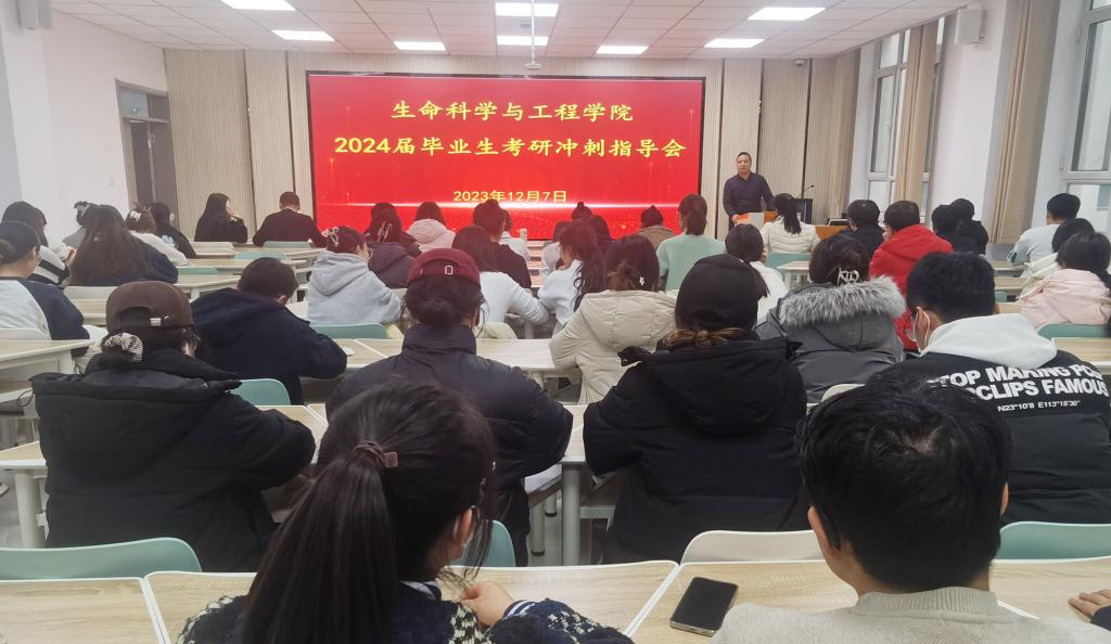 为进一步增强学生考研信心,坚定迎考备战决心,引导学生积极应考,做好考前最后阶段的复习,近日,生命科学与工程学院组织2024届考研学生举办考研冲刺指导会。