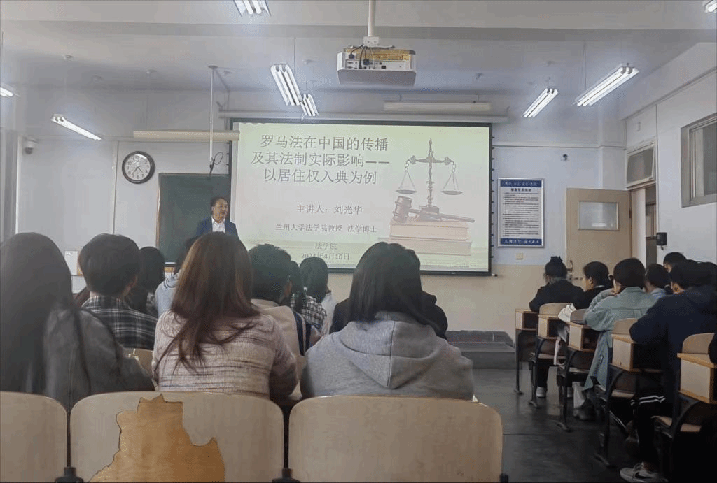 应法学院邀请,4月10日,兰州大学法学院刘光华教授为我校法学专业师生作了“罗马法在中国的传播及其法制实际影响”学术讲座。