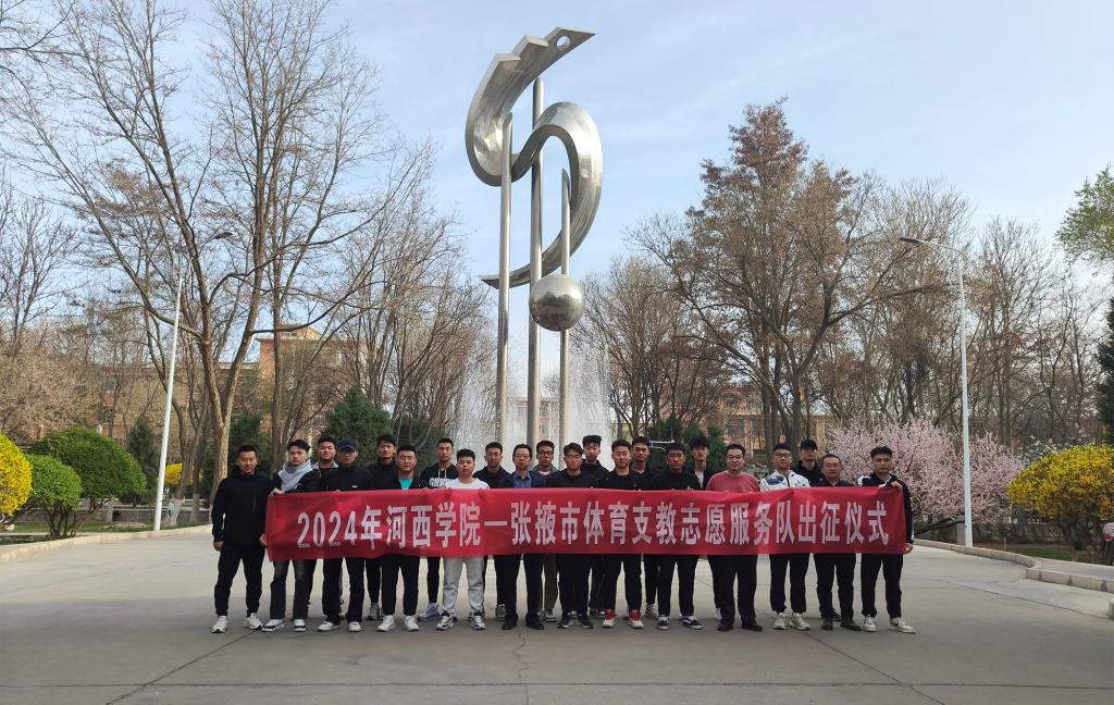 4月15日上午,学校举行2024年河西学院——张掖市体育支教志愿服务队出征仪式。体育学院负责人、带队指导老师及体育学院18名大学生志愿者参加了出征仪式。