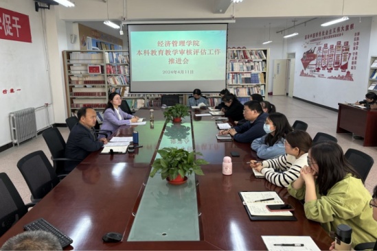 4月11日下午,经济管理学院召开本科教育教学审核评估工作推进会,全体教职工参加会议。