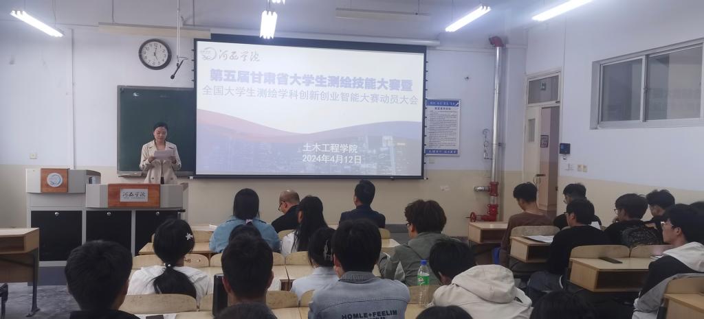 4月12日下午,土木工程学院召开了第五届甘肃省大学生测绘技能大赛暨全国大学生测绘学科创新创业智能大赛选拔赛动员大会。学院负责人、广州南方测绘公司张掖分公司负责人、指导教师及100余名学生参加动员会。