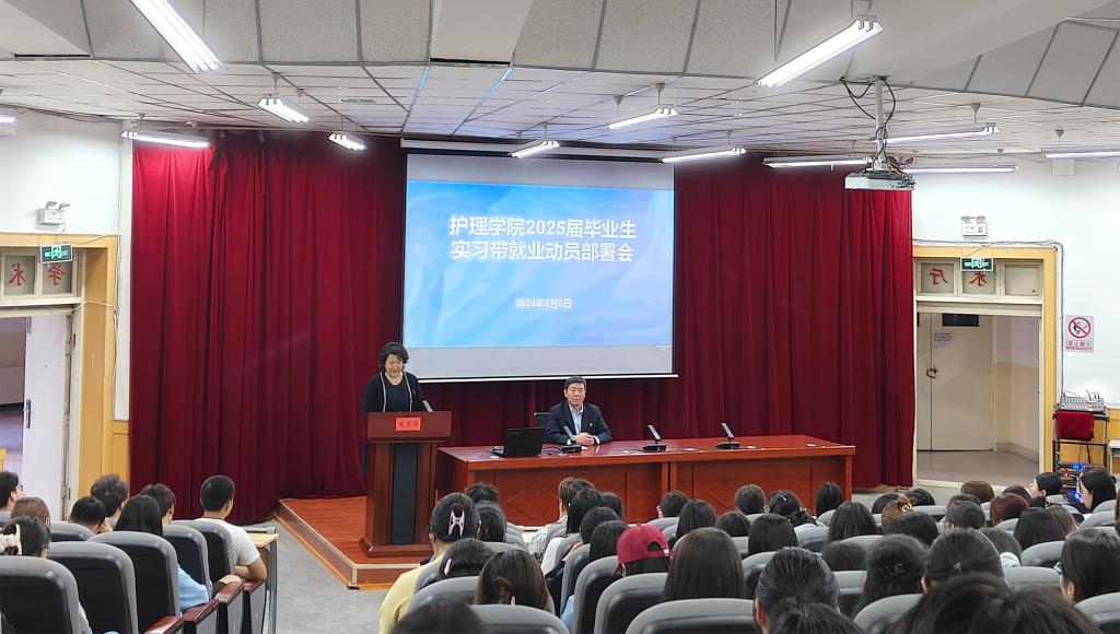 5月6日,护理学院举办了2025届本专科毕业生实习带就业动员部署会。护理学院400多名2025届实习带就业本专科毕业生参加了会议。
