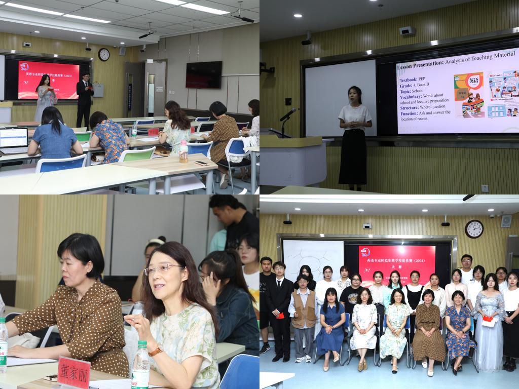 为加强英语专业生培养质量,提升师范生教育教学技能,5月5日-25日,外国语学院举办了英语专业师范生教学技能竞赛。经过预赛和复赛,5月25日,学院2022级、2023级英语教育专业14名师范生进入决赛。