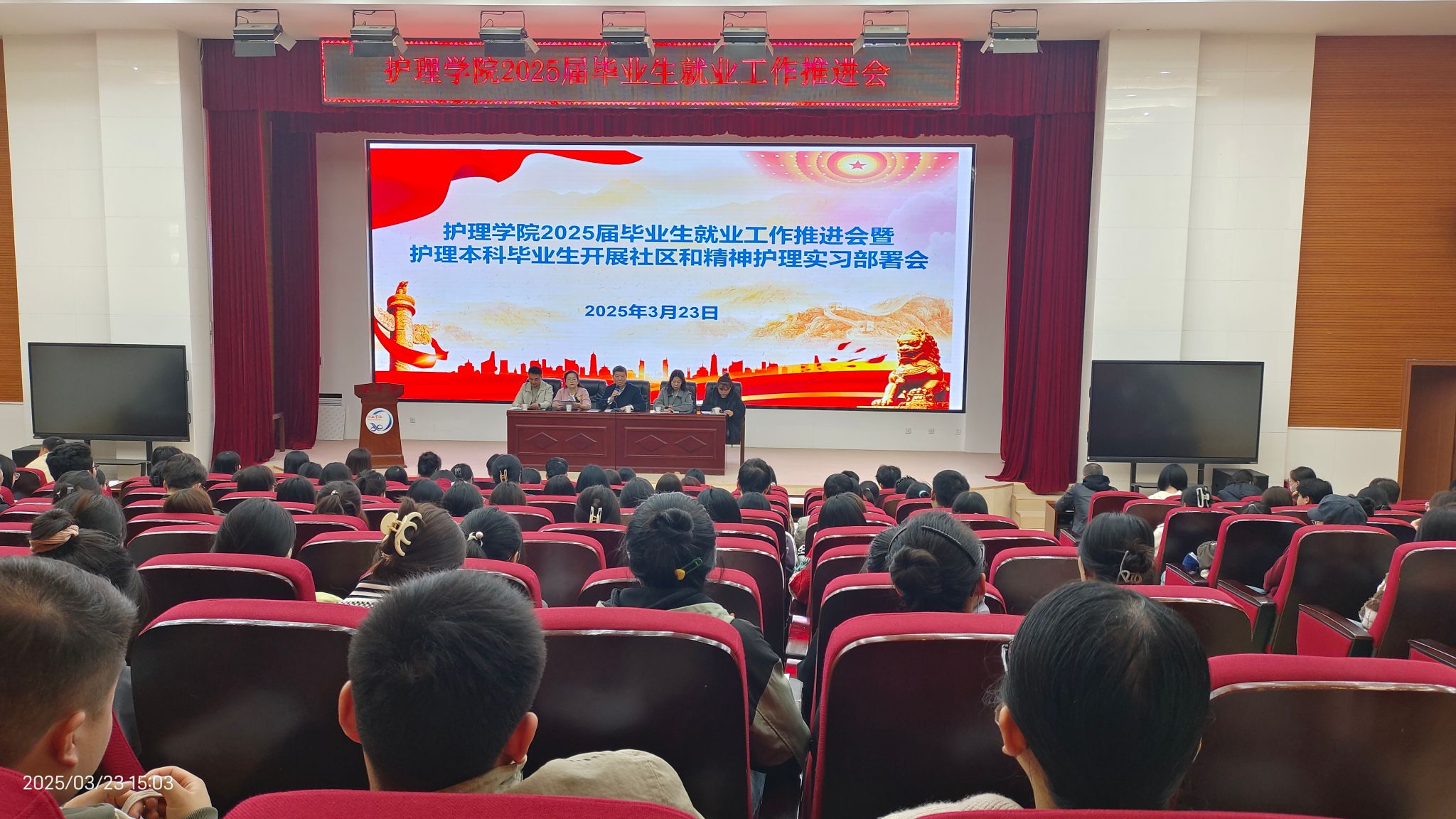 3月23日,护理学院举办了2025届毕业生就业工作推进会及护理本科毕业生社区精神护理实习部署会。学院负责人、辅导员、相关班主任及2025届毕业生参加。