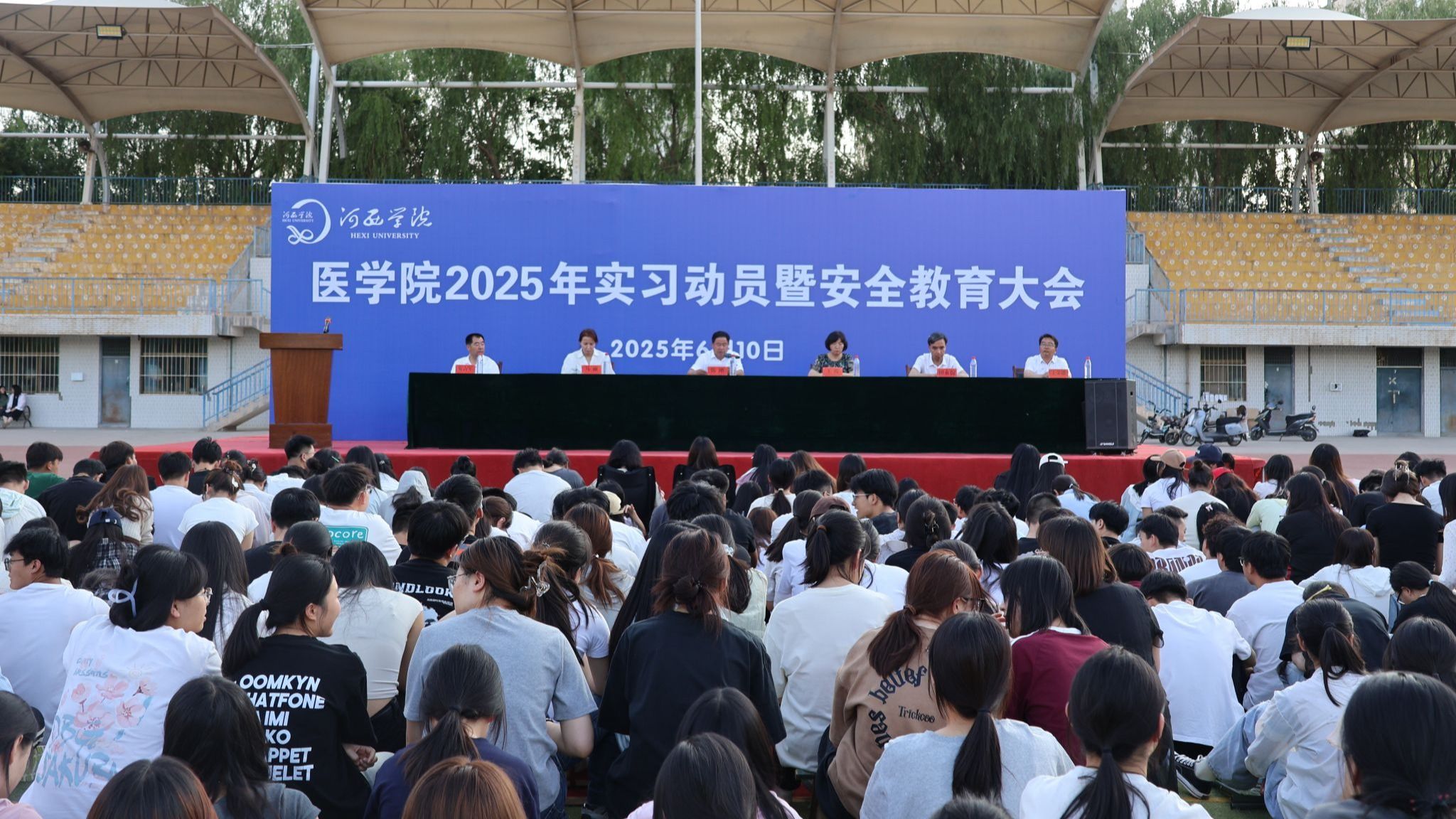 6月10日,医学院2025年实习动员暨安全教育大会在塑胶操场召开。全体实习学生参加大会。