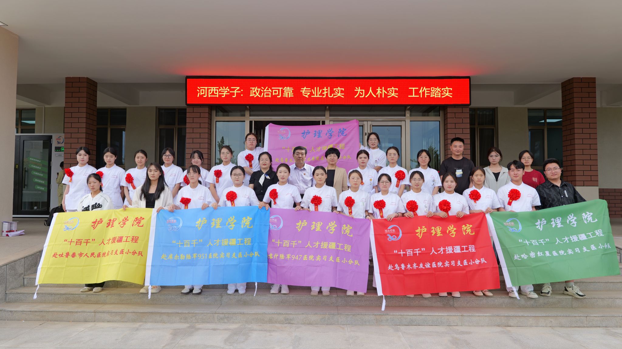 近日,护理学院举办第九批赴新疆实习支医出征仪式。学院领导、辅导员、班主任及学院师生代表参加出征仪式。