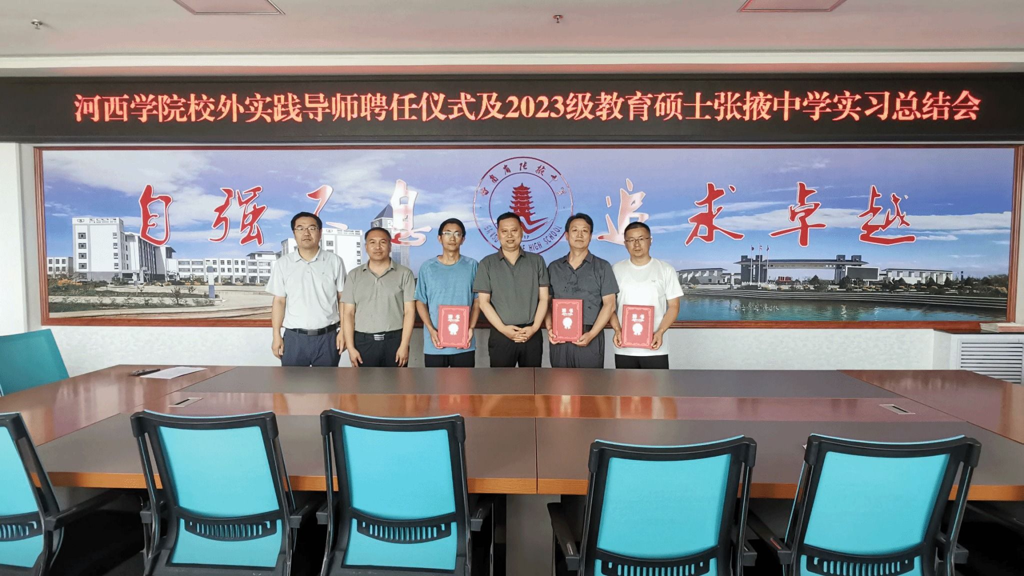 7月2日,数学学院在张掖中学举行校外实践导师聘任仪式暨2023级教育硕士(学科教学-数学)张掖中学教育实习总结会。学院负责人、校外实践导师以及2023级全体教育硕士参加此次会议。
