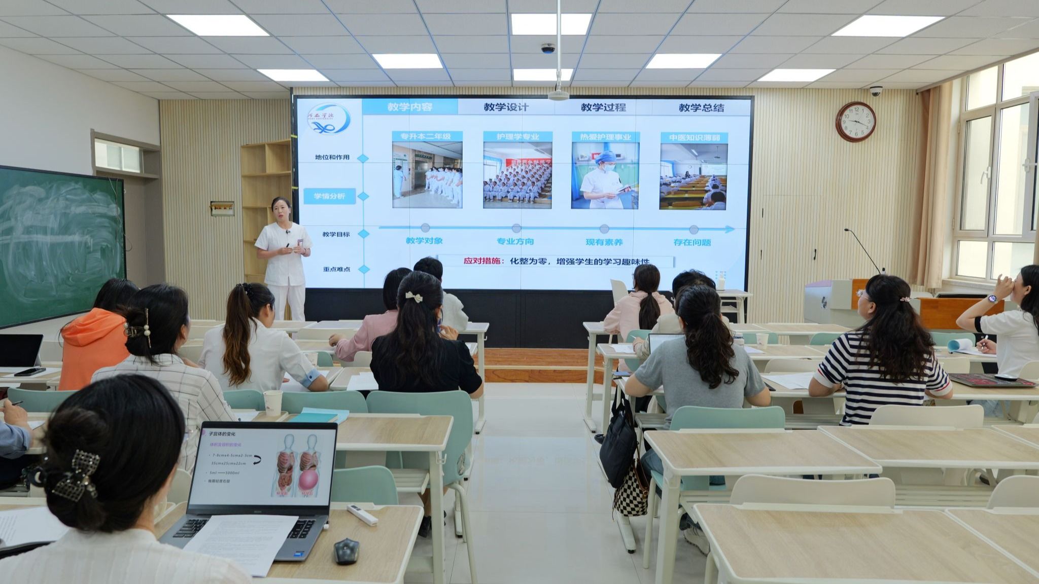 6月5日,护理学院第二届教师教学技能竞赛成功举办,10名青年教师同台竞技,学院教师现场观摩。