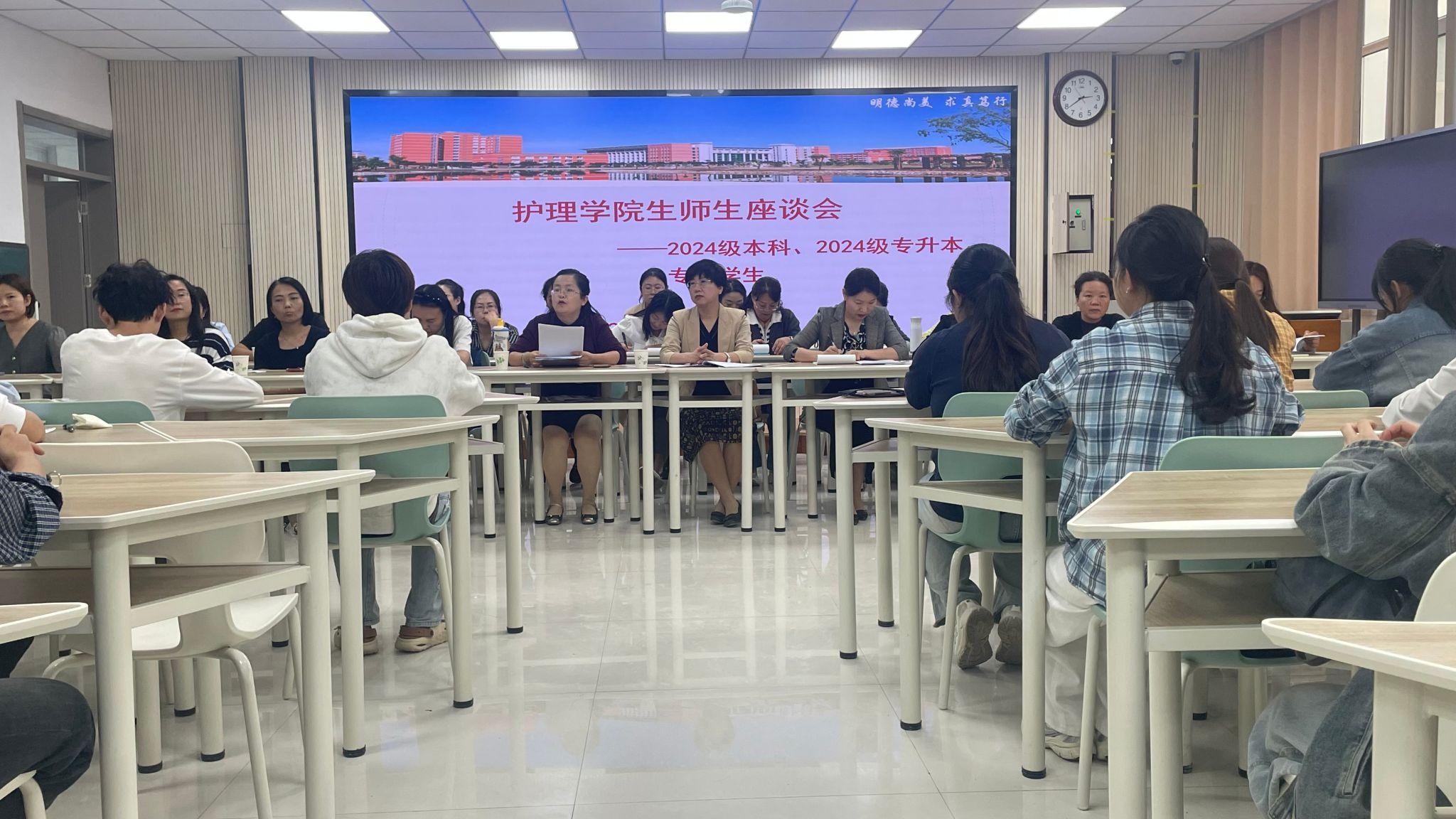 9月18日,护理学院召开2024级师生座谈会,学院负责人、任课教师、班主任及医学院、附属医院临床教师代表与24级各班学生代表参会。