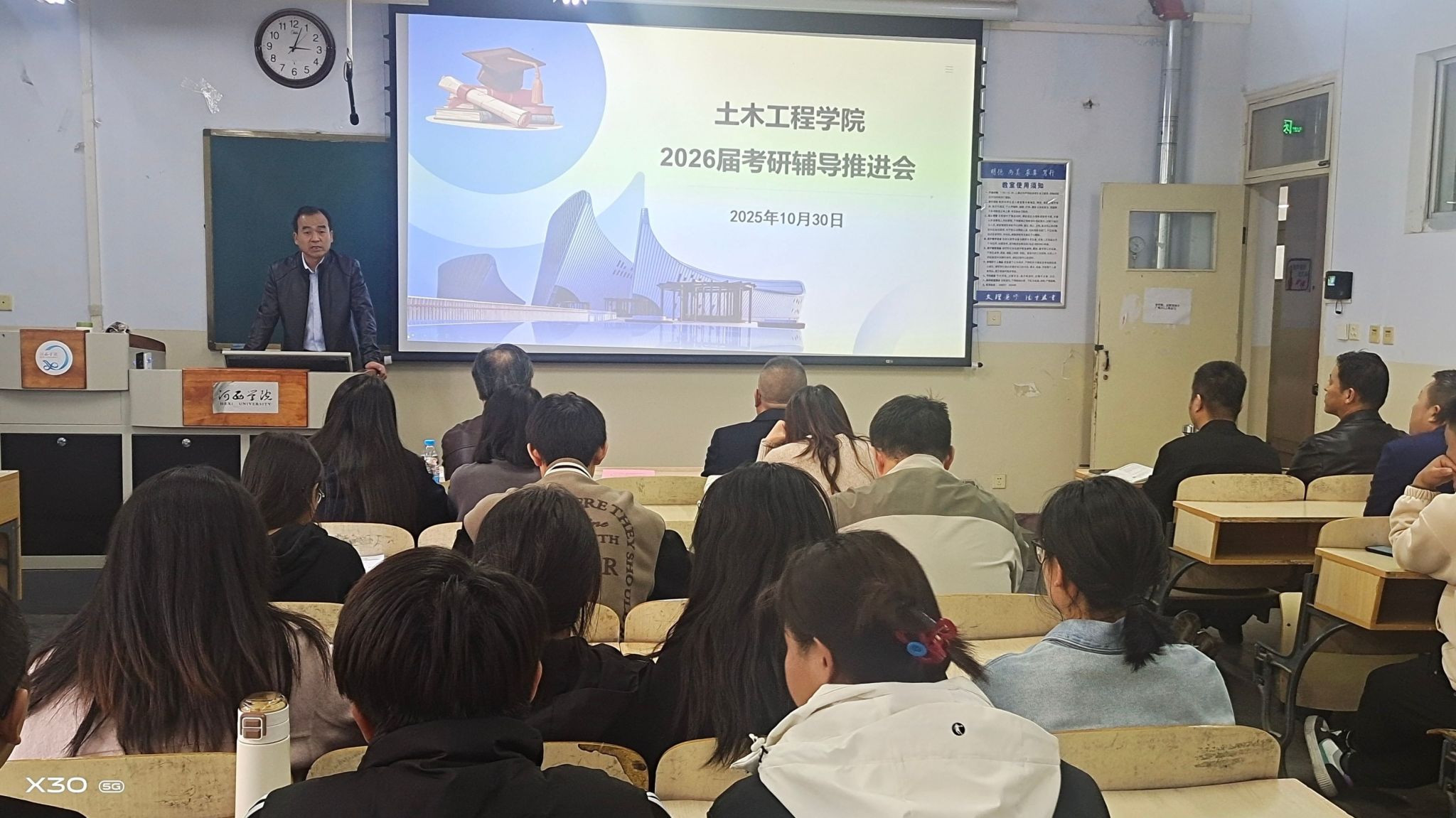 10月30日,土木工程学院组织召开2026届考研辅导推进会。学院领导、专业课辅导教师以及70余名报考学生参加。