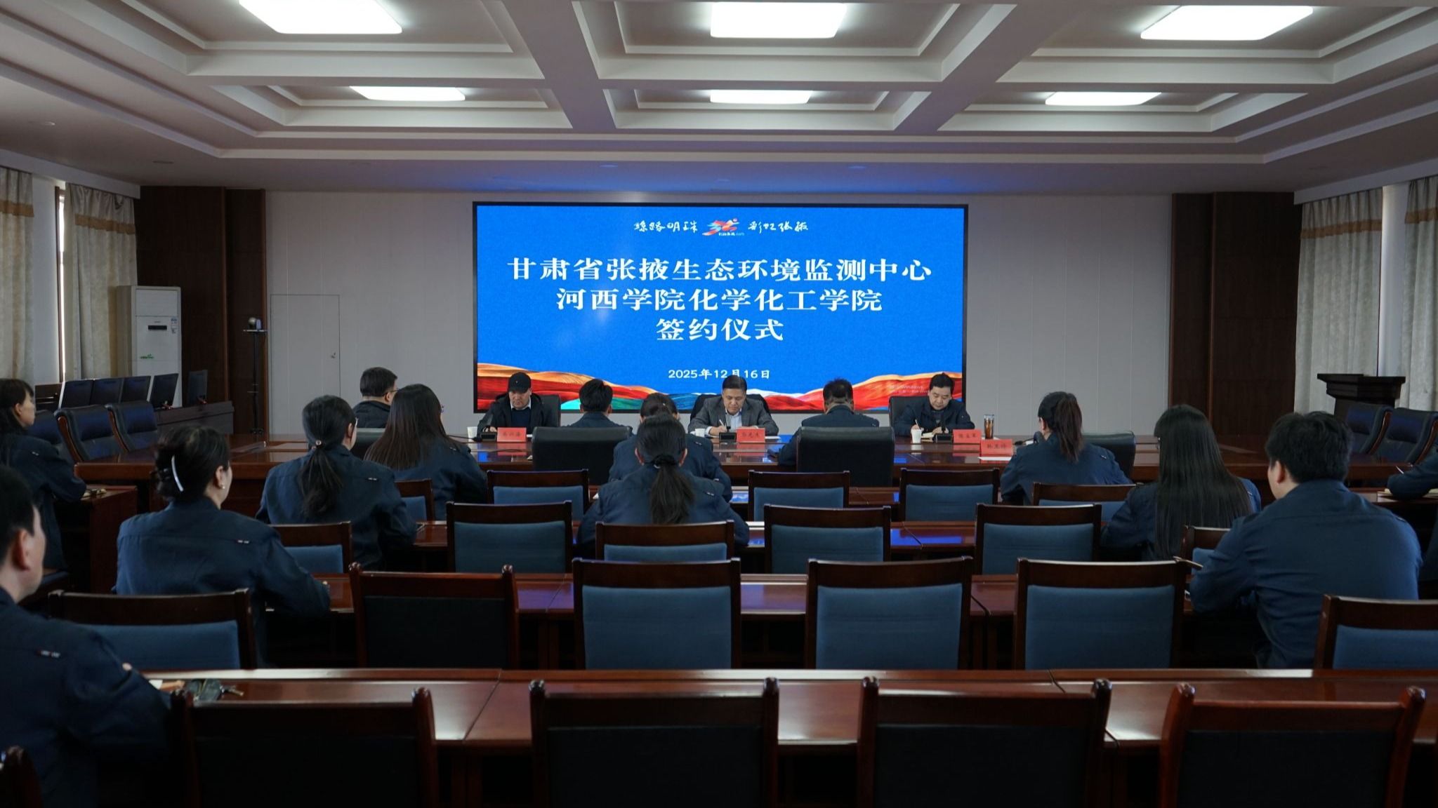 12月16日,化学化工学院前往甘肃省张掖生态环境监测中心开展实地调研,并与中心正式签署合作协议,共建高校毕业生实习就业基地。双方共同为“河西学院实习就业基地”揭牌。