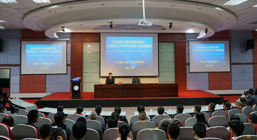 4月29日晚,应法学院邀请,中国人民大学法学院博士生导师冯玉军教授在图书馆学术厅作了题为“全面依法治国新征程:法治的古今中外比较与发展模式”的学术报告。法学院负责人主持报告会,法学院部分师生、张掖市律师协会部分执业律师参与聆听。...