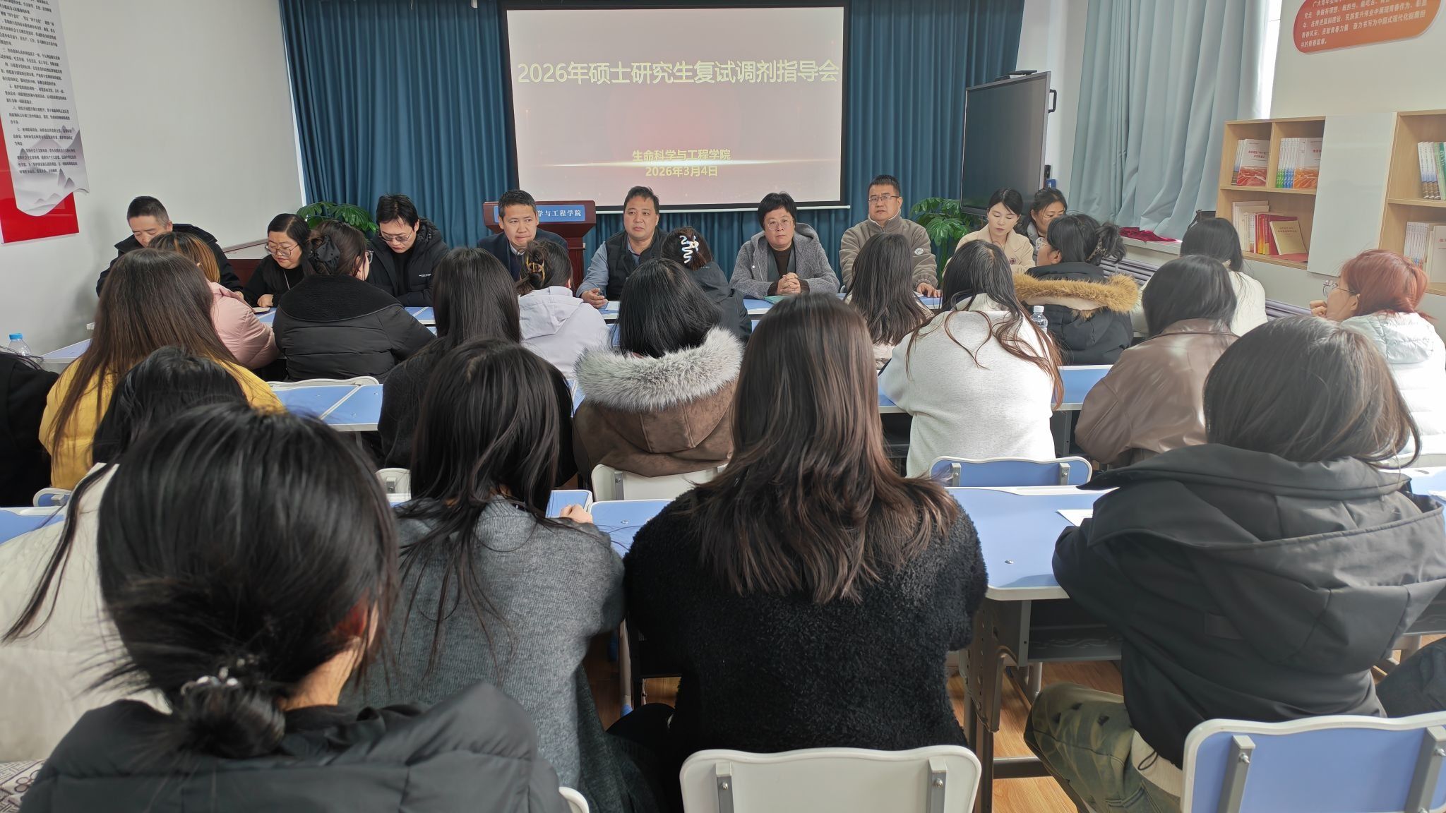 3月4日,生命科学与工程学院召开2026年硕士研究生复试调剂指导会。学院负责人、教研室主任、毕业班班主任及博士教师代表参加,为初试上线考生提供指导。
