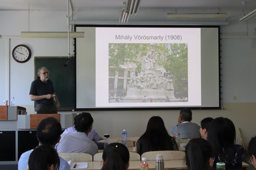 7月19日下午,匈牙利比较文学著名学者彼得•海居教授应邀来校作了题为“城市景观和文学”的学术讲座。文学院及外国语学院的部分师生聆听了讲座。报告会邀请了兰州大学文学院张同胜博士担任翻译。