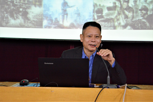 9月22日晚,军旅作家罗元生教授,应邀来学校作了题为“文学创作实践谈——以非虚构文学创作为例”的学术报告。报告会由文学院负责人主持,文学院和信息技术与传媒学院师生近300人聆听了报告。