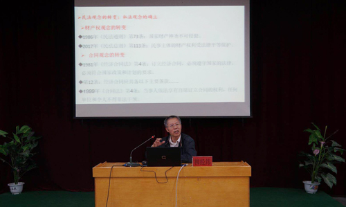 9月25日上午,中国政法大学教授、博士生导师柳经纬在学术报告厅作了题为“改革开放40年与民法变迁”的学术报告。法学院负责人主持,法学院师生参与聆听。