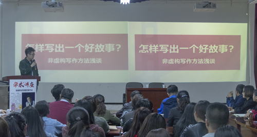 9月29日晚,文学院举办了主题为“非虚构写作的技巧与方法”的专场学术交流报告会。邀请《智族GQ》杂志报道总监何瑫作为主讲,与文学院师生及陇上一叶文学社的成员们共同分享有关非虚构写作方法和技巧的创作经验。