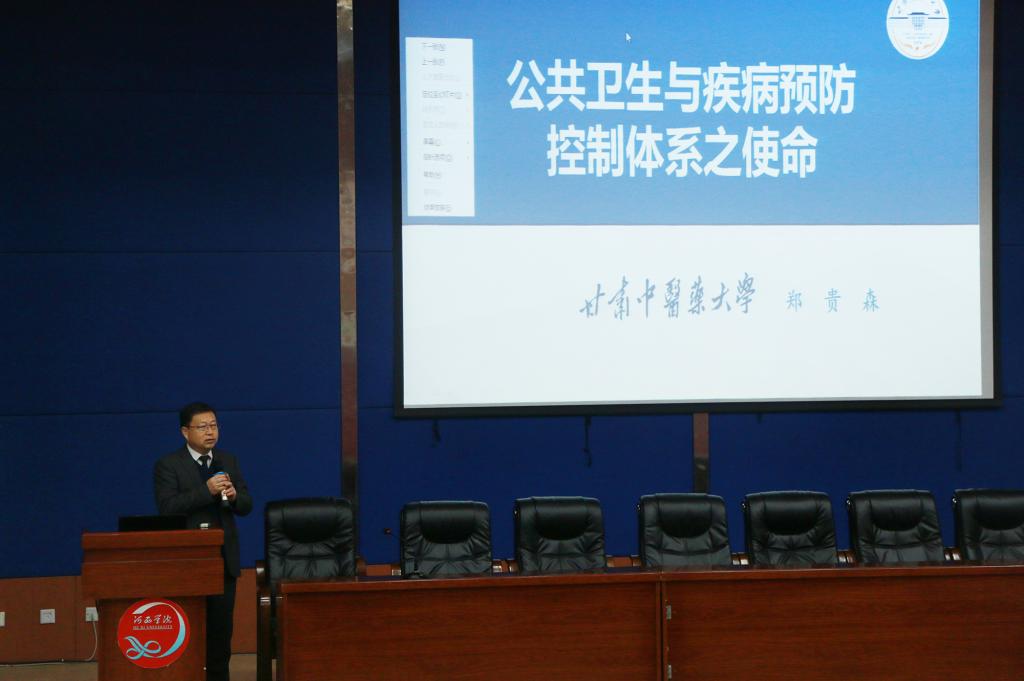 11月24日下午,甘肃中医药大学博士生导师郑贵森教授为医学院师生作了题为 “公共卫生与疾病预防控制体系之使命”的专题报告。医学院、附属医院180多名师生参加了报告会。