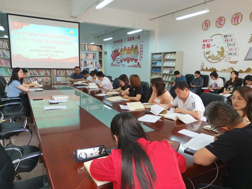 7月1日下午,经济管理学院教工党支部开展“六个一”工程党员示范课评课活动,经济管理学院全体教师党员参加。